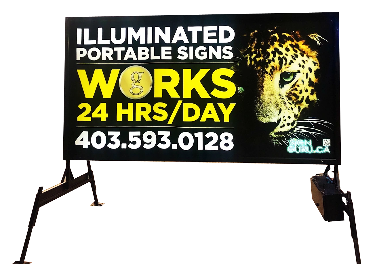 Sign Guru is a leader in the Edmonton, Calgary, Sherwood Park and Winnipeg portable Mobile Road Signs rental industry offering digitally printed full color portable signage.
